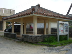 | 集落入口にある共同売店。 | 集落前の通り。 | シーサーが置いてあります。シーサーは南北に設置され、その範囲がかつての集落の範囲だという。 |
