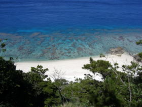 | 入り口のロープを越えたらこんな道が続きます。 | 安室島・渡嘉敷島方面。 | ニシバマを見下ろす。 |