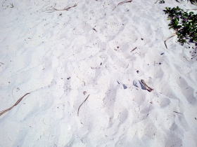 | 阿波連ビーチ程ではないにせよ、結構人はいます。 | 砂も綺麗です。 |