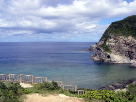 | 座間味島最東端にあるチシ展望台。座間味集落から行くとなると阿佐集落も越えるので、結構遠い場所になります。他の展望台と違い慶良間諸島が一望できる場所にはありません。割と荒々しさも感じる眺めであります。 この展望台からは下りることができ(結構面倒ですが)、そこで泳ぐこともできるでしょう。現にダイビング船がいるとこや、シュノーケリングしている人を見たことがあります。ひょっとしたら穴場かも知れません。機会があったら是非泳いでみたいものです。ただし、当然ですが、周囲にシャワー施設等はありません。2008年の時点ではトイレは改修工事中でした。 |