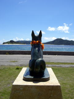 | 横から | 後ろから。確かに阿嘉集落の方を向いている。でも、確かシロは反対方向向いてますね。 |