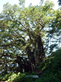 | これが夫婦ガジュマル。 | 大きくて写真に全体が入りきらない。 | 根元。看板が壊れかけている。 |