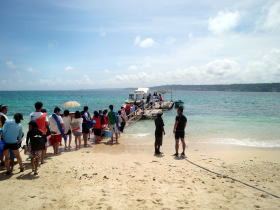 訪れたのは7月下旬とシーズン真っ盛りではあったとはいえ、せいぜい観光客がいても数十人だと思ったら、チケット売り場で聞いたところによると、本日既に150人以上が上陸してますとのこと。昼過ぎに訪れたので、既に帰っている人もいるとは思いますが、それにしても凄い人数。慶良間諸島の安慶名敷島も無人島なのに3、40人ぐらいいたことはありますが、その比ではありません。人気なんですねぇ・・・。