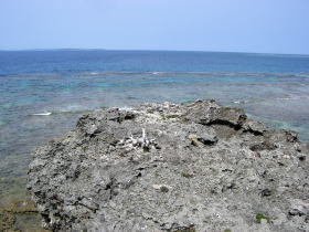 | 北海岸 | 崖の上。遠くに見えるのは勝連半島かな? | イノー(サンゴ礁池)が広がります。遠くには岩場もあります。 |