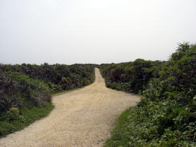 ウパーマからカベールへは一本道が続き、空の青と両脇の植物群落が見事に映えて走っていて気持ちいいです。久高島を紹介するガイドブックやホームページにもこの道が使われることが多いです。
