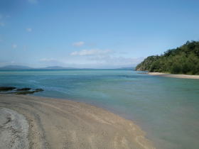 | 上の写真と特に変わりありませんが。 | 塩屋方面から見た宮城島と塩屋大橋。 | 宮城島の西端。何の地図で見たかは忘れましたが、海水浴場があるとか。確かに遠目から見ても砂浜が見えます。もっとも、進入路は管理人には見つけられませんでした。 |