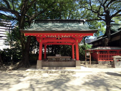 | 少し横の角度から。 | 境内八社巡りというのがある。八社を巡って大願成就とのこと。八社は船玉神社・志賀神社・人丸神社・菅原神社・稲荷神社・三日恵比須神社・少彦名神社・天津神社です。数字としては特にきりが良くないのは気のせいでしょうか? |