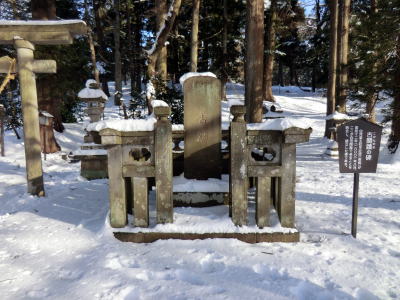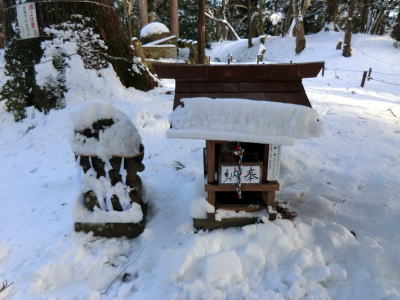 | 従二位の杉。鎌倉前期の歌人、従二位の藤原内卿家隆が手植えしたという。 | 何かあるけど雪で進入できず。 |