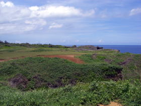 | 万座毛は県指定名勝の沖縄でも有数の観光地です。琉球石灰岩で出来た岸壁からの眺めは絶景であります。 万座毛の由来は琉球国王の尚敬が「万人を座らせるに足りる」と賞賛したことから名付けられたという。 |