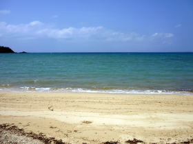| 名嘉真集落前ビーチはその名の通り集落前のビーチです。もっとも、管理人が勝手に名付けただけですが。どっかでも書きましたが、大抵集落前の浜はメーヌハマ(前浜)という名前という場合が多い。 村内の他の集落前の浜と同じく、白砂にリーフがあまり発達していない海という光景が広がります。とは言っても、綺麗な海ではあります。 |