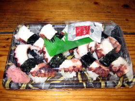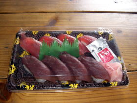 | 管理人はよくここで買い食いしてました。 | マグロ寿司。安いときは550円ぐらいだった気がする。 | タコのときもある。 |