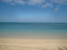 | 冬撮影バージョン。やっぱ沖縄に限らずビーチ写真は夏に撮るのが一番です。 | 写真写りはともかく実際に見たら冬でも綺麗ですけどね。 | 空の色の問題ですかね。 |