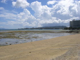 | 集落近くのビーチ。旧久良波集落はこの近辺だったようです。 | 干潮気味。 | |