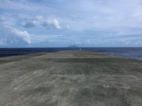 | コンクリートの隙間。完成した当初は隙間がないはずなのだが、段々拡がっていくらしい。 | 近づいてきました。 | 悪石島 |