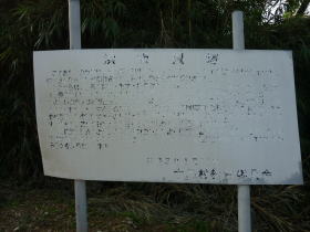 | 集落東側入口。 | 登っていくと看板などがあります。大池もこっちの方なのですが、聞いた話だと道がないそうです。 | ほとんど読み取れないが、浜坂貝塚の看板。 |