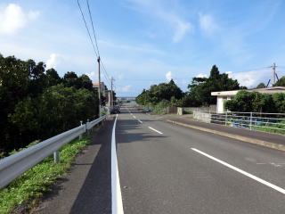 | 川を隔てた右の家までがカドグチ地区のようだ。 | 県道。管理人の影が入ってしまった。 | 立神 |