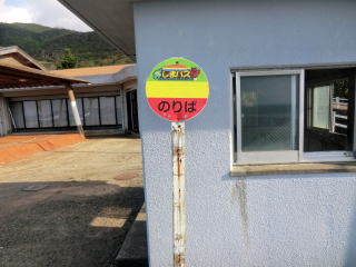 | 公民館と土俵 | バス停 | 石垣。ハブ除け棒がある。 |